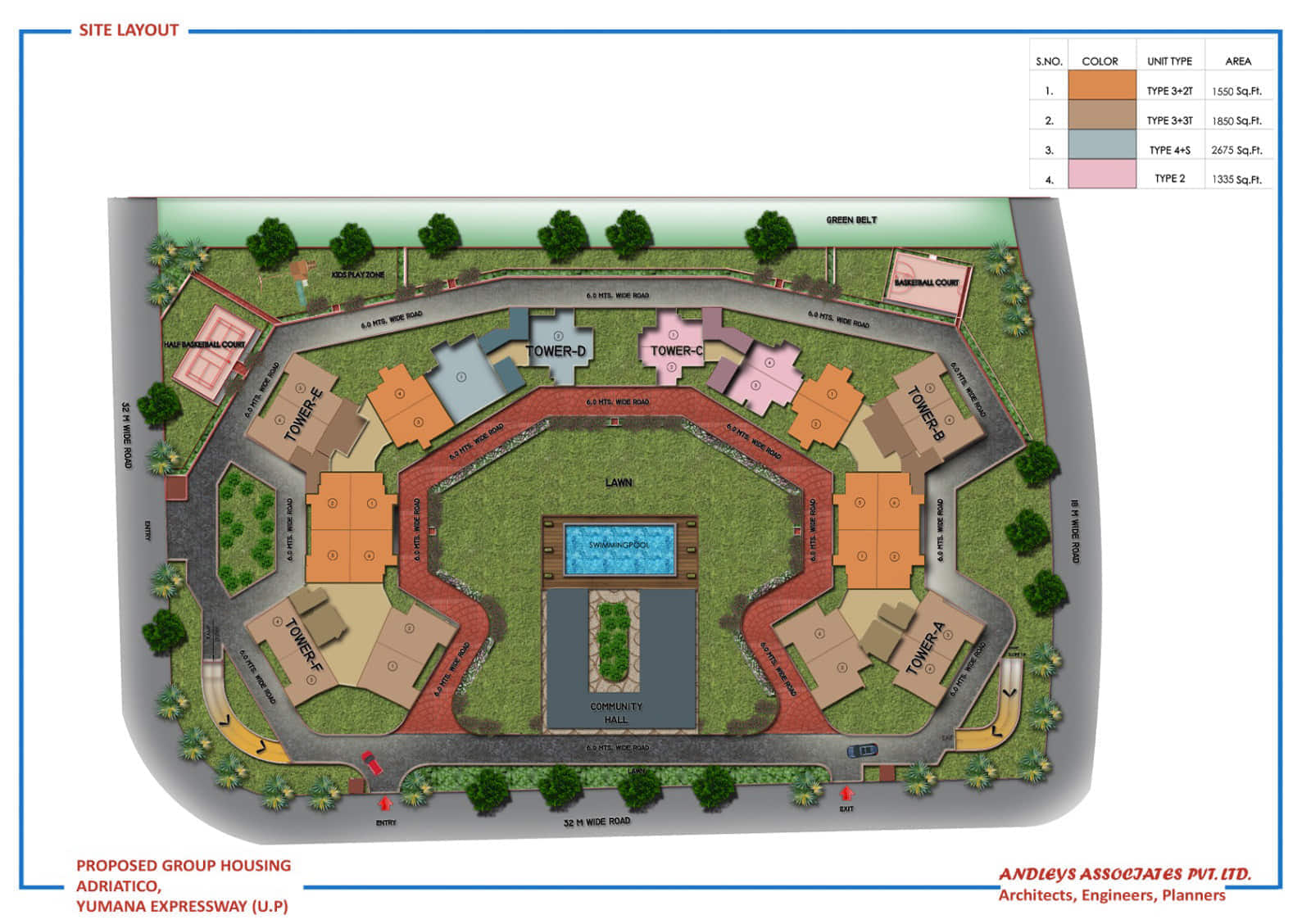 The project boasts modern lifestyle amenities, including a grand clubhouse, half Olympic-size swimming pool, fully equipped fitness center, dedicated kids’ zones, and leisure spaces for all age groups. Strategically located near the Buddh International Circuit, it offers excellent connectivity to Delhi, Noida, and Agra via the Yamuna Expressway.